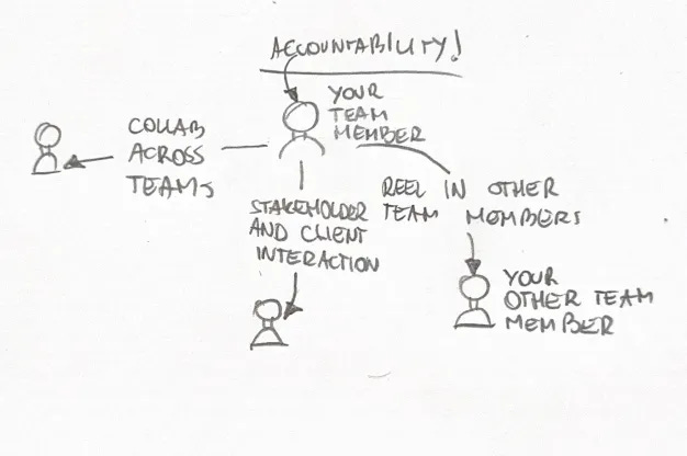 Accountability emerges: one individual orchestrates the broader outcome